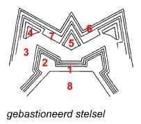 Aan de overzijde van de gracht werd een gedekte weg met wapenplaatsen aangelegd. De bloeiperiode van dit Oud-Nederlandse stelsel valt samen met de 80-jarige oorlog.