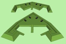 - Ze dienden ter verdediging van de voet van de walmuur, vandaar dat er zich ook twee schietgaten op de begane grond bevonden.