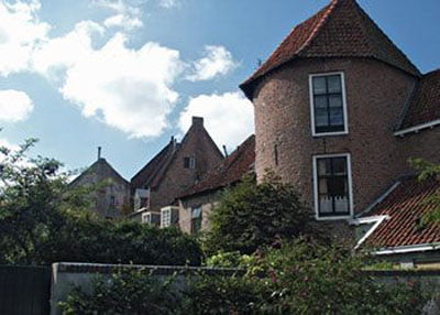 Toegangspoort dateert uit 1723 met het 4e echtpaar. Vanaf 1611 een bejaardenhuis voor ouden van dagen van 30-plus van onbesproken gedrag. Minder vermogenden werden op aparte mannen- en vrouwenzalen ondergebracht. De rijken kochten zich in een proveniershuis voor verblijf en verzorging.