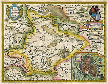 Hieronder is een stukje te zien van de kaart van Zutphen uit de bekende atlas van J. Bleau. In 1652 was de (Boompjes)wal een feit. De aanleg van de wal had grote gevolgen voor de omgeving.