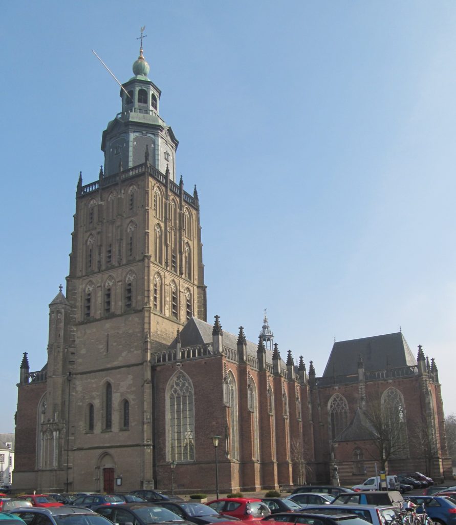 Rond 1220 werd begonnen met de bouw van de huidige kerk. Deze bestond uit het onderste deel van de toren, het middenschip, het transept en het hoogkoor. Aan het eind van de veertiende eeuw werd de kooromgang gebouwd met de Raadskapel. In 1446 brandde de toren voor de eerste keer af. In de tweede helft van de vijftiende eeuw werden eerst de huidige zijbeuken van het schip gebouwd en aan het einde van die eeuw de beide grote dwarskapellen en fotiefkapellen waar kanunniken missen lazen. Rond 1500 volgde het Mariaportaal. In 1600 brandde de toren voor de tweede keer af. Tot dan toe had de toren een hoge spits van 117m. In 1663 – 1637 werd een torenbekroning in de vorm van de huidige peperbus op de toren gebouwd. In 1948 brandde de toren voor de tot nu toe laatste keer af. Van 1969 tot 1972 werd de toren in ere hersteld. De laatste grote restauratie van de kerk dateert van 1990 tot 1998. Nu heeft de klokkenstoel een betonnen vloer. Er hangen in de toren vier grote klokken, genoemd naar de vier prinsessen. We hebben een klokkenluidergilde, dat iedere zaterdagavond om zes uur naar boven klimt om de zondag in te luiden. Iedereen, die om kwart voor zes zin heeft om de 100 treden omhoog te klimmen, mag mee aan de touwen hangen om hen daarbij te helpen.